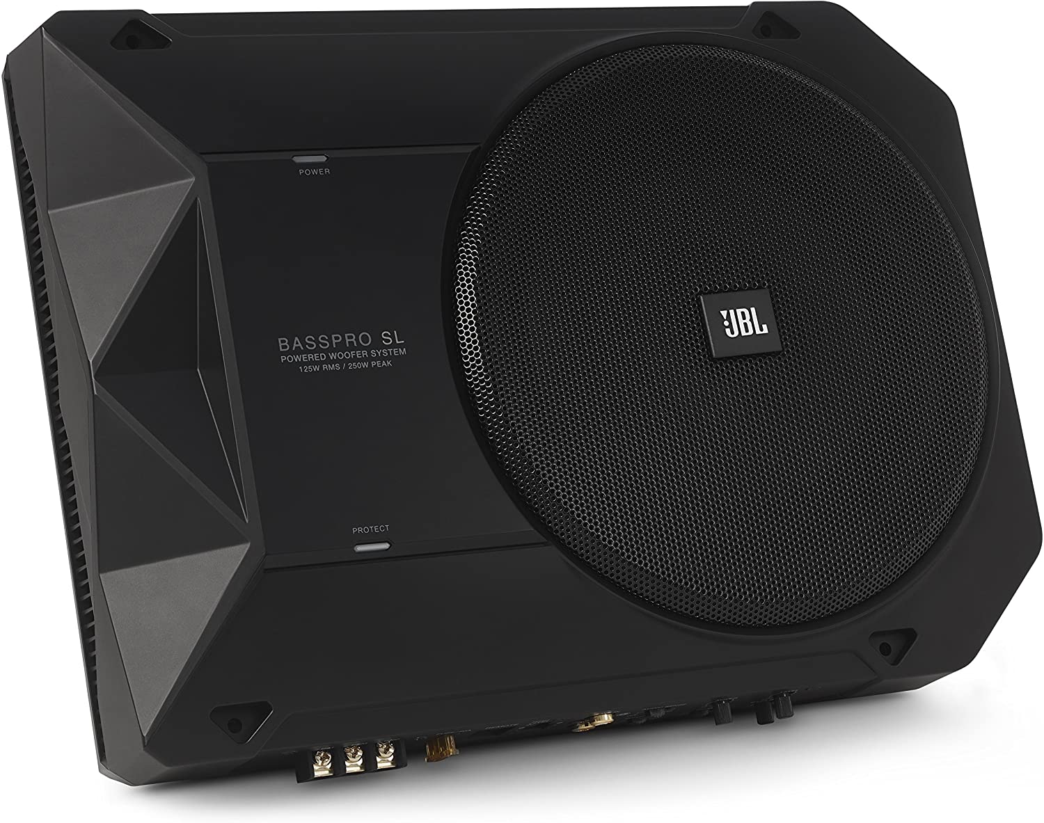 If you need the comfort of shopping for a subwoofer that is already in an enclosure, you may select the JBL BassPro SL Subwoofer Enclosure System. This compact subwoofer is housed in a low-profile, ABS plastic enclosure that may match under virtually any car seat. The speaker has the most power score of 250 watts and an RMS power of 125 watts.